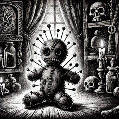 The shopkeeper glanced down at the doll, a shadow crossing his face. “The legend goes that these dolls were made by witches, those skilled in the dark arts. A witch would craft the doll in the likeness of someone they sought to control or harm, using bits of fabric, strands of hair, anything that connected the doll to its intended victim.”